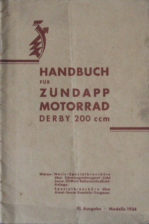 Preview: Zündapp Derby 200 ccm Motorrad 1934 Betriebsanleitung (2102)